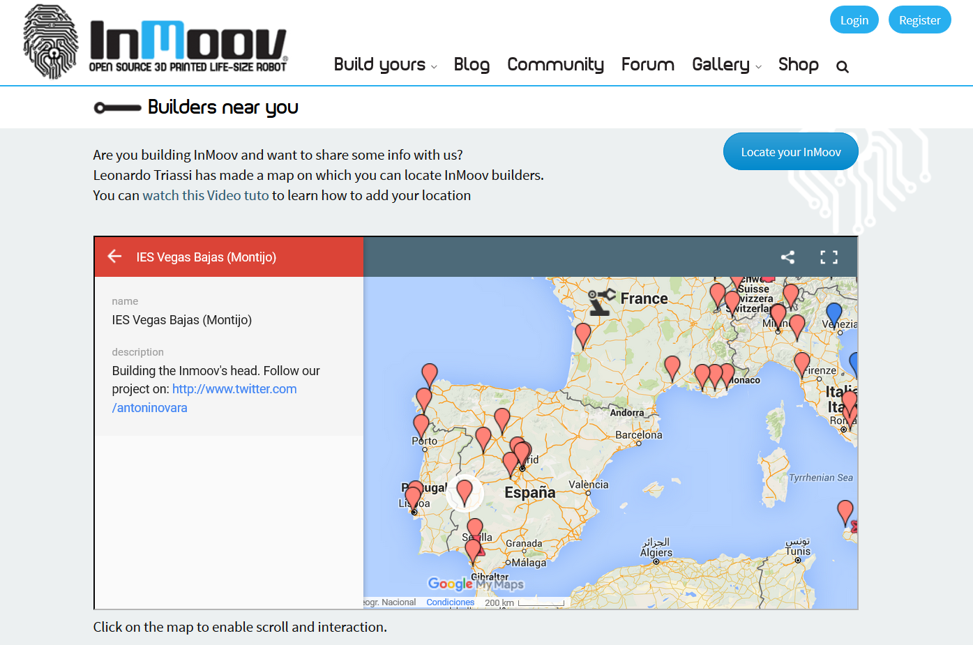 Y por último, podemos ver nuestro proyecto georeferenciado en la web de Inmoov. Aquí se pueden ver todos los lugares del mundo dónde alguien está construyendo alguna parte de este magnífico robot.