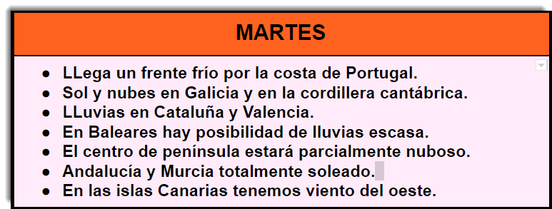 - Desarrollo claro de todo lo que se va exponer. Para ello es necesario utilizar un vocabulario correcto y que incluya términos meteorológicos.