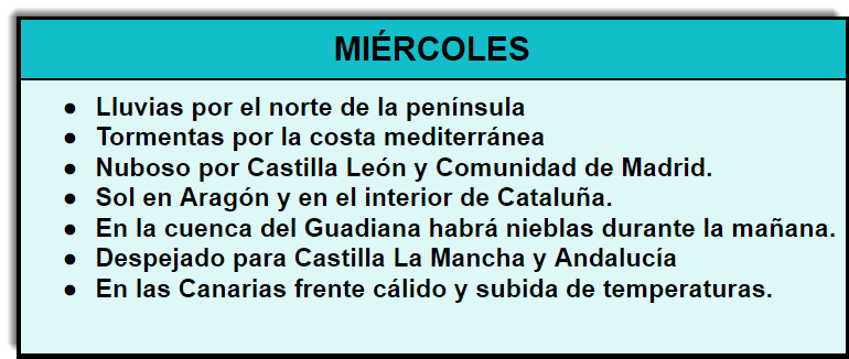 A partir de todos los datos meteorológicos y los modelos de predicción se elaboran los MAPAS del tiempo, como los que vemos en la televisión o en las página dedicadas al tiempo: