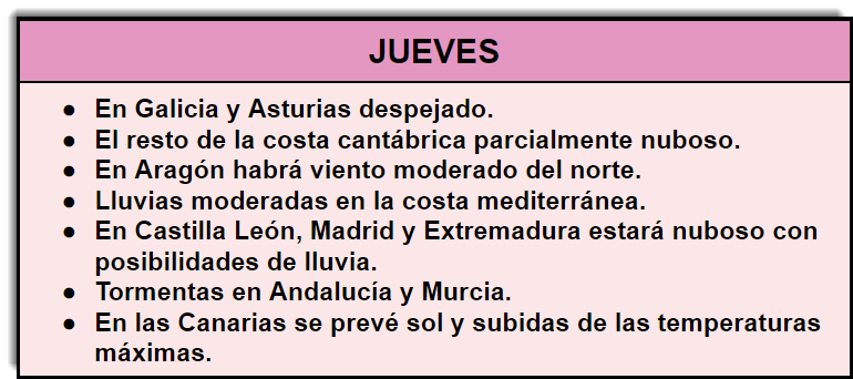 - Desarrollo claro de todo lo que se va exponer. Para ello es necesario utilizar un vocabulario correcto y que incluya términos meteorológicos.